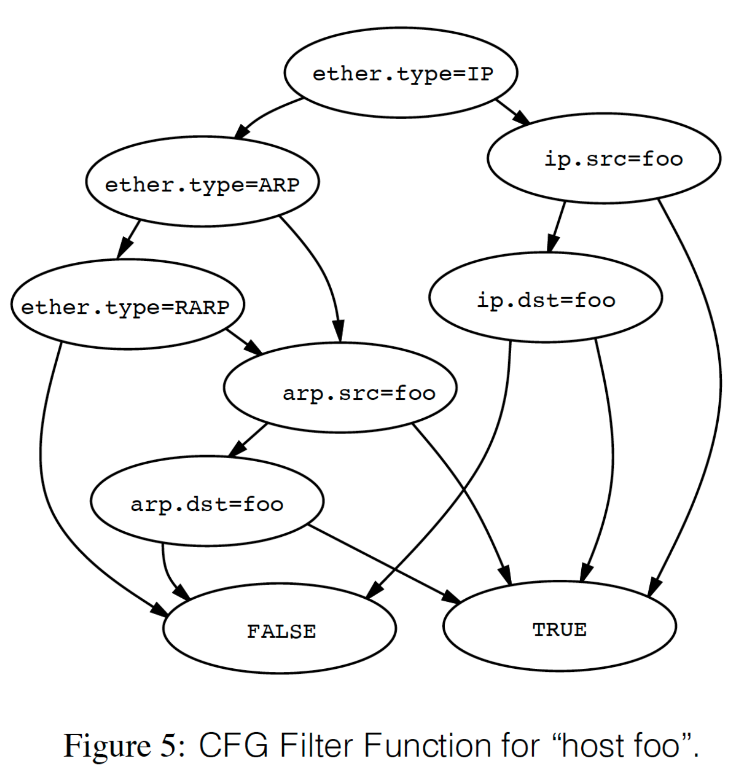 这个典型的 Packet Filter 转换为 DAG ,则为(左分支为 no,右分支为 true):