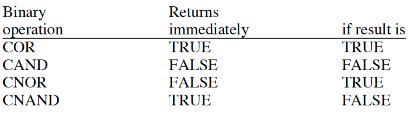 为了能够立即返回,还有如下的 short-circuit 的 binary operator: