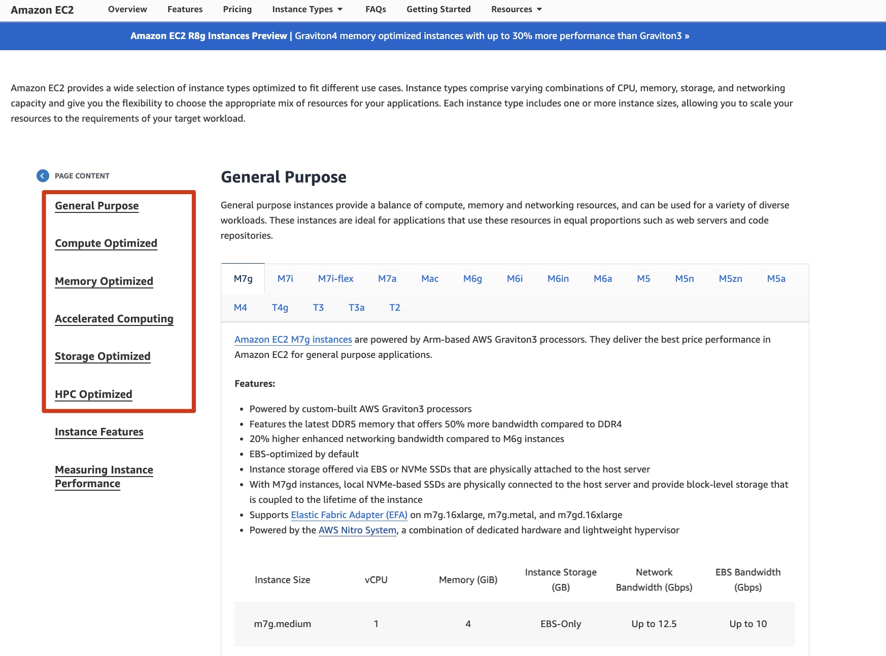尽管 AWS 有数百种 EC2 机型,但其实只有以下几种大的分类