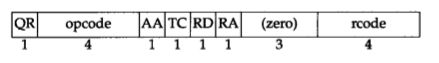 opcode:4 bit,通常值为 0(标准查询),其他值为 1(反向查询)和 2(服务器状态请求); -