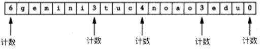 这表示了两个域名:usc.edu 和 ucla.edu,其中 edu 字符串只需要出现一次,并与其他域名共享。