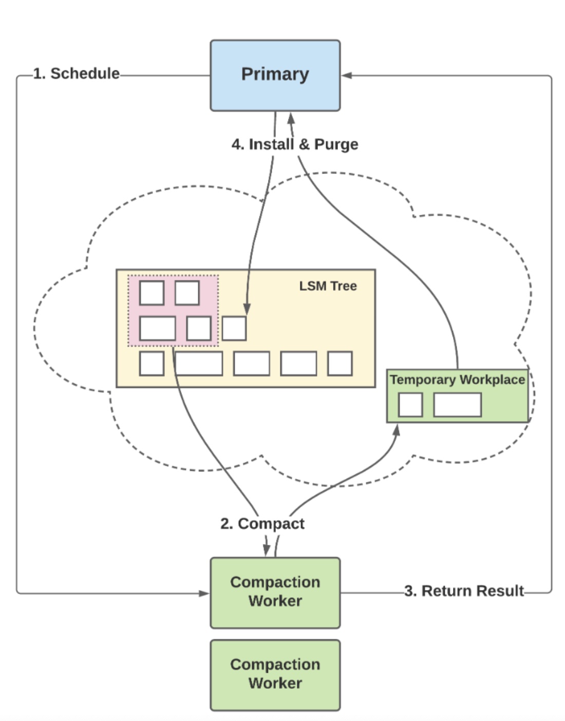 由于 CaaS 是以 RocksDB 为原型进行设计,我们同样可以参考 RocksDB 的 Remote Compaction