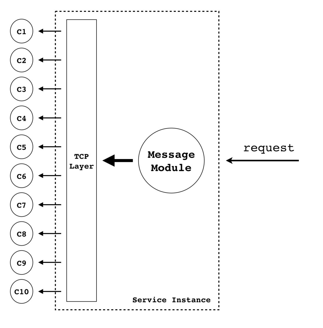 让我们假设这么一个简单的场景:对 10 个客户端发送一条消息。